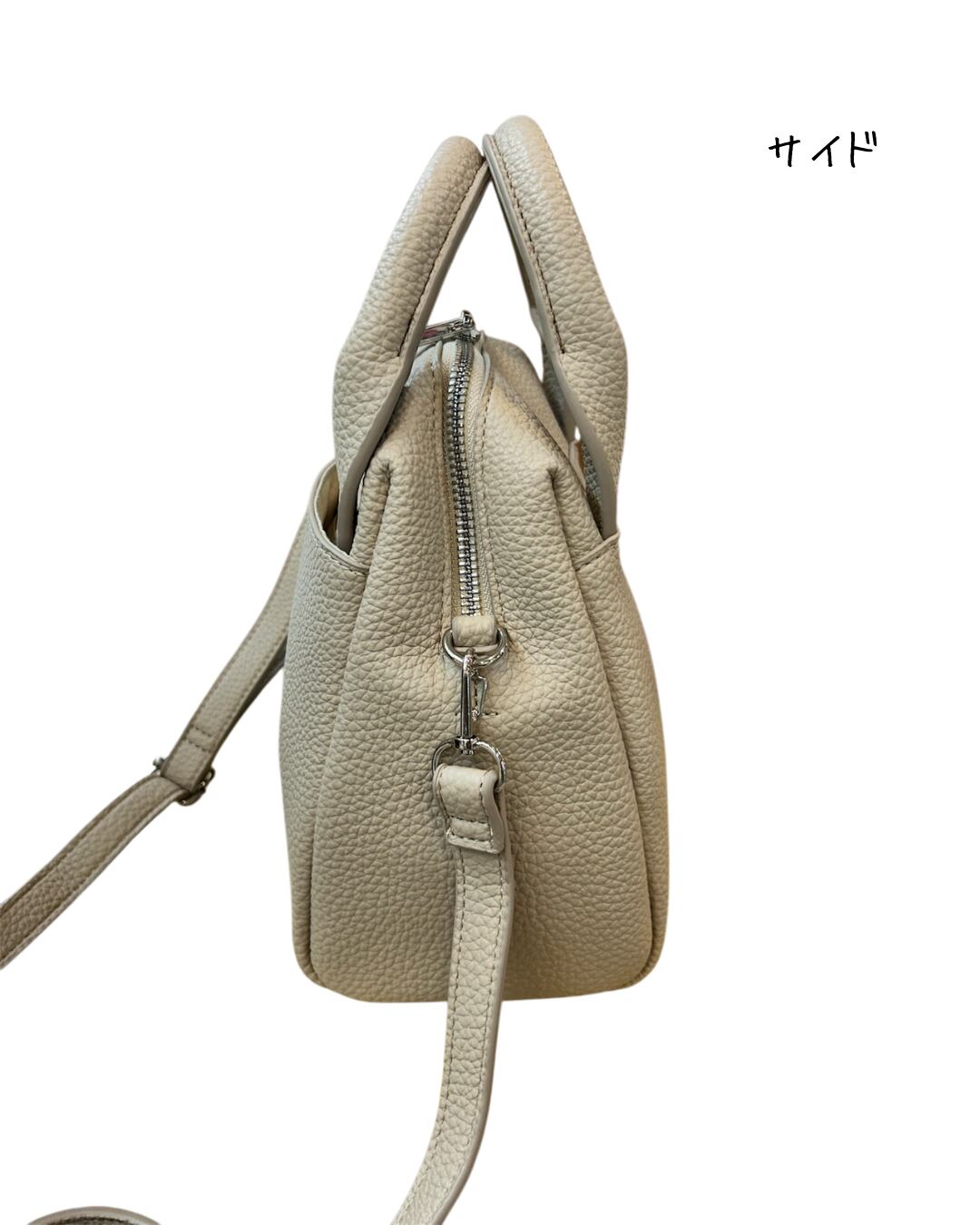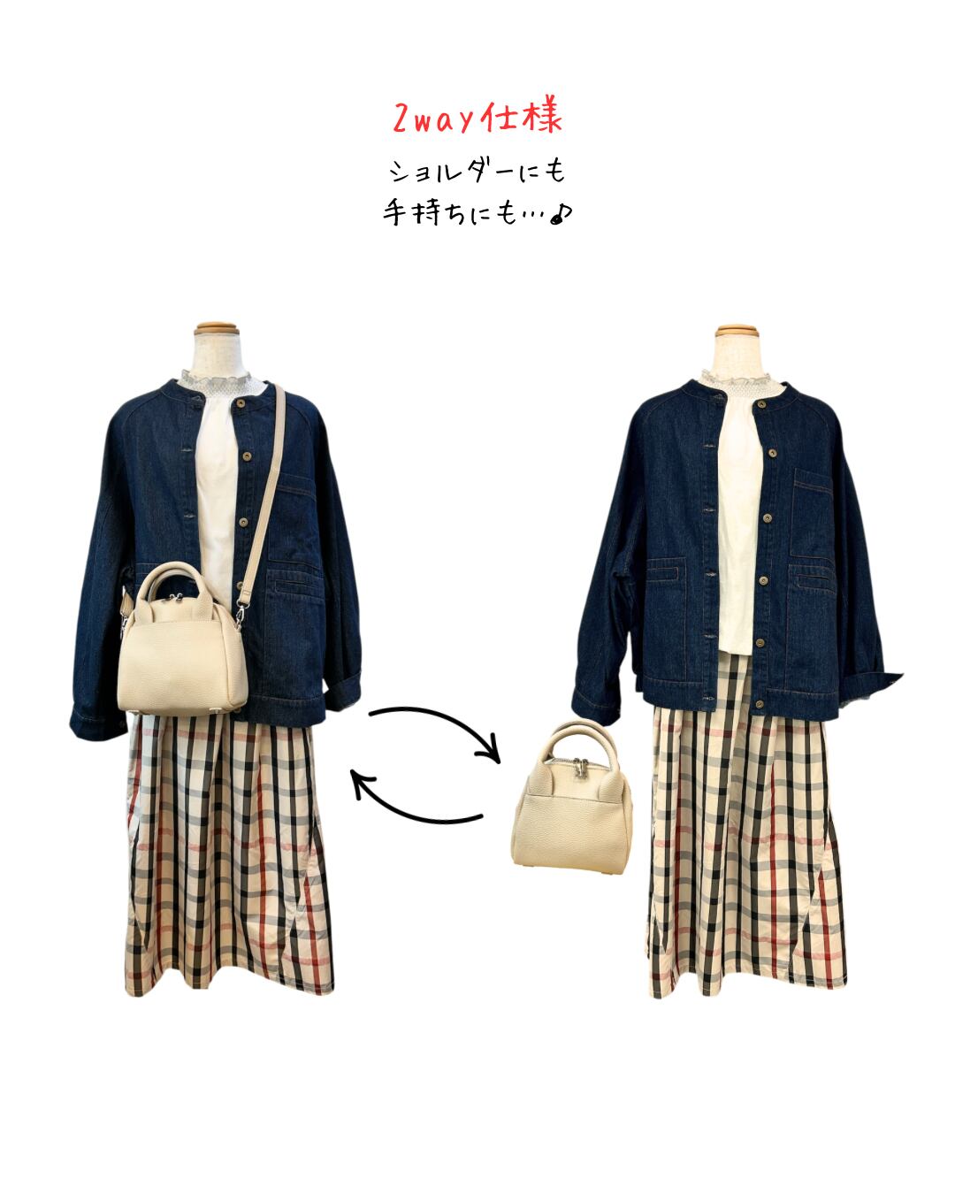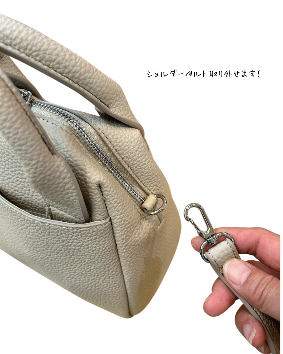 ころんとしたフォルムが可愛い2Way仕様のミニボストンバッグ。体への負担が少ない軽量素材を厳選し、本革では実現しにくい350gの軽さ&500mlペットボトルが入る収納力を両立しました♪