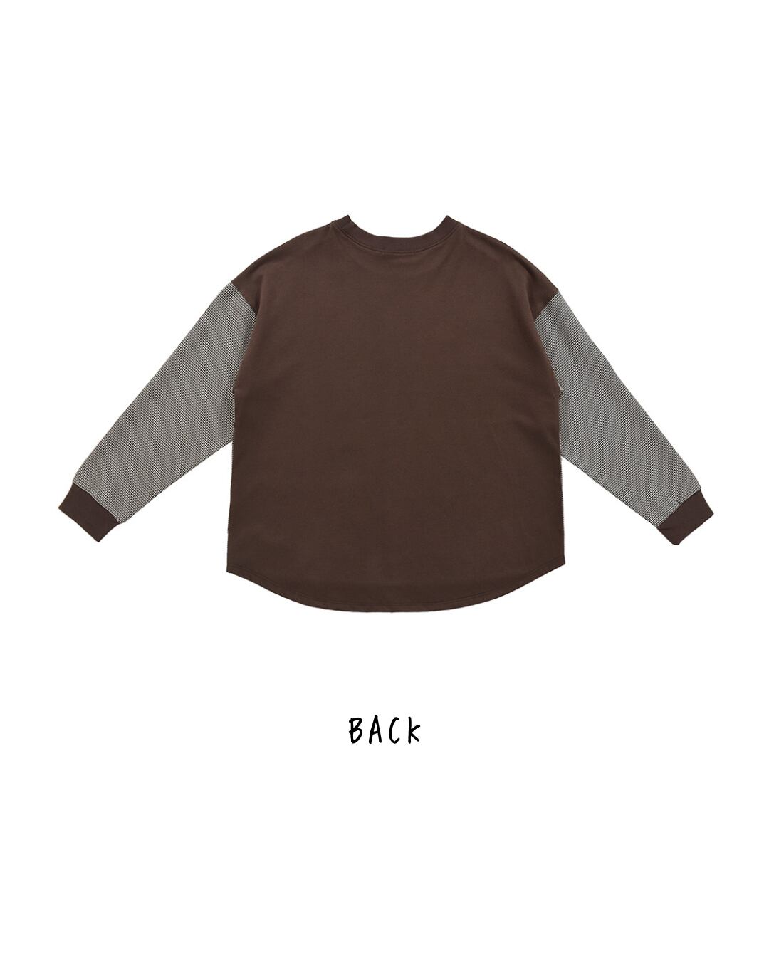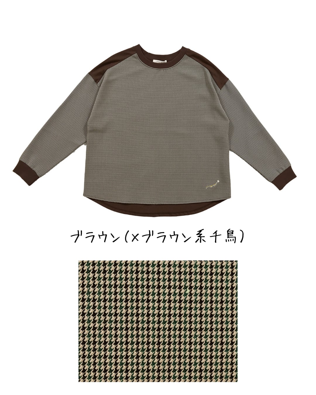 前身頃と袖に柄物の布帛を使用しカットソー素材と切替えたデザインのプルオーバーです。