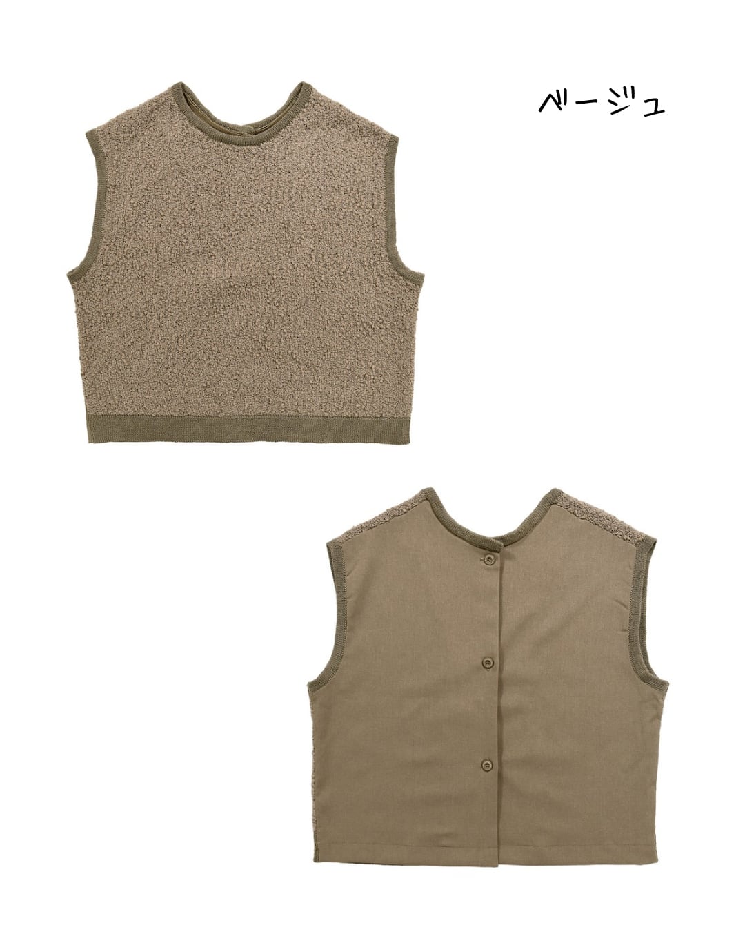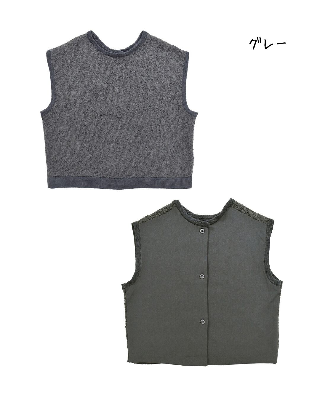 布帛側は前聞きのボタンが付いたシンプルなデザイン。どちら側を前にしても着られる2WAY仕様のベストです♪