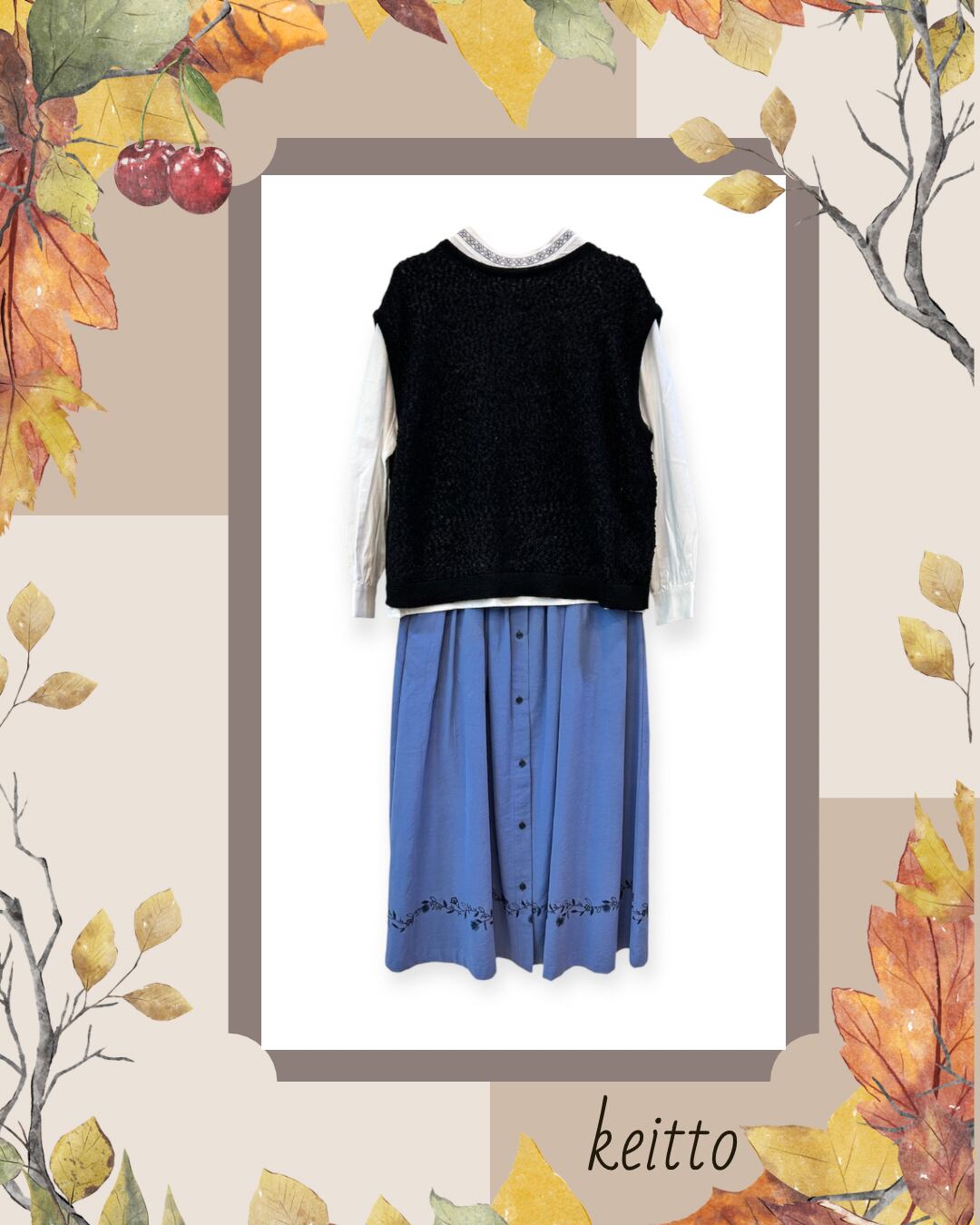 ニットはポコポコとしたファンシーヤーンを使用し、立体感のある編地になっています。
