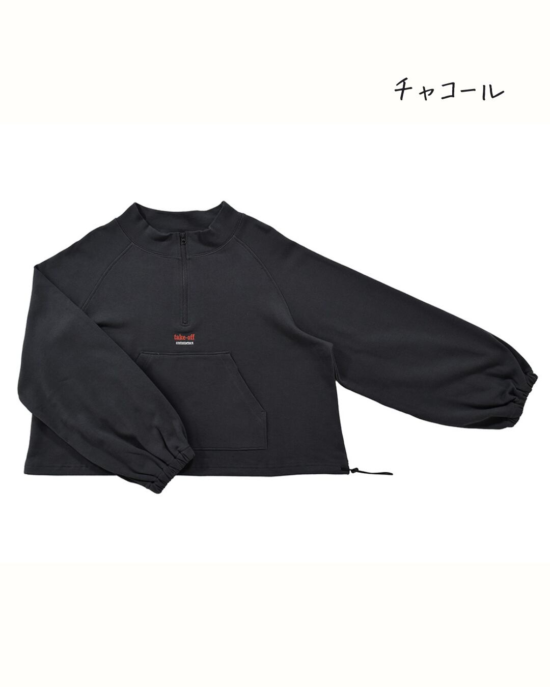 裏毛素材を使用した、ハーフジッププルオーバー。USA古着から着想を得たデザインで、ハイネックとカンガルーポケットがアクセントに。
