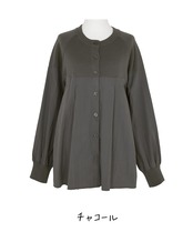 Aラインシルエットとふんわりした袖が女性らしい印象です。