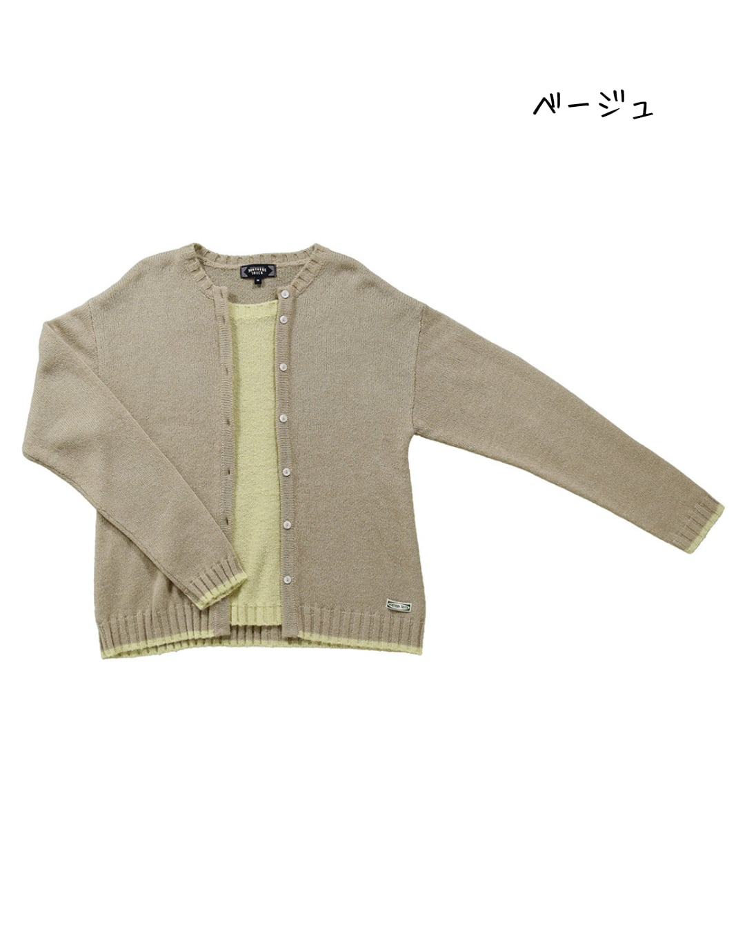 まるでインナーを着ているかのような、フェイクレイヤードデザインが目を引くカーディガン。