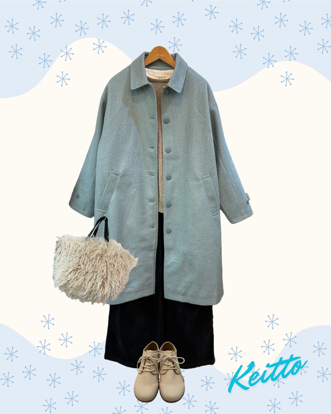 ロング丈のストレートシルエットが上品な印象のコートです。